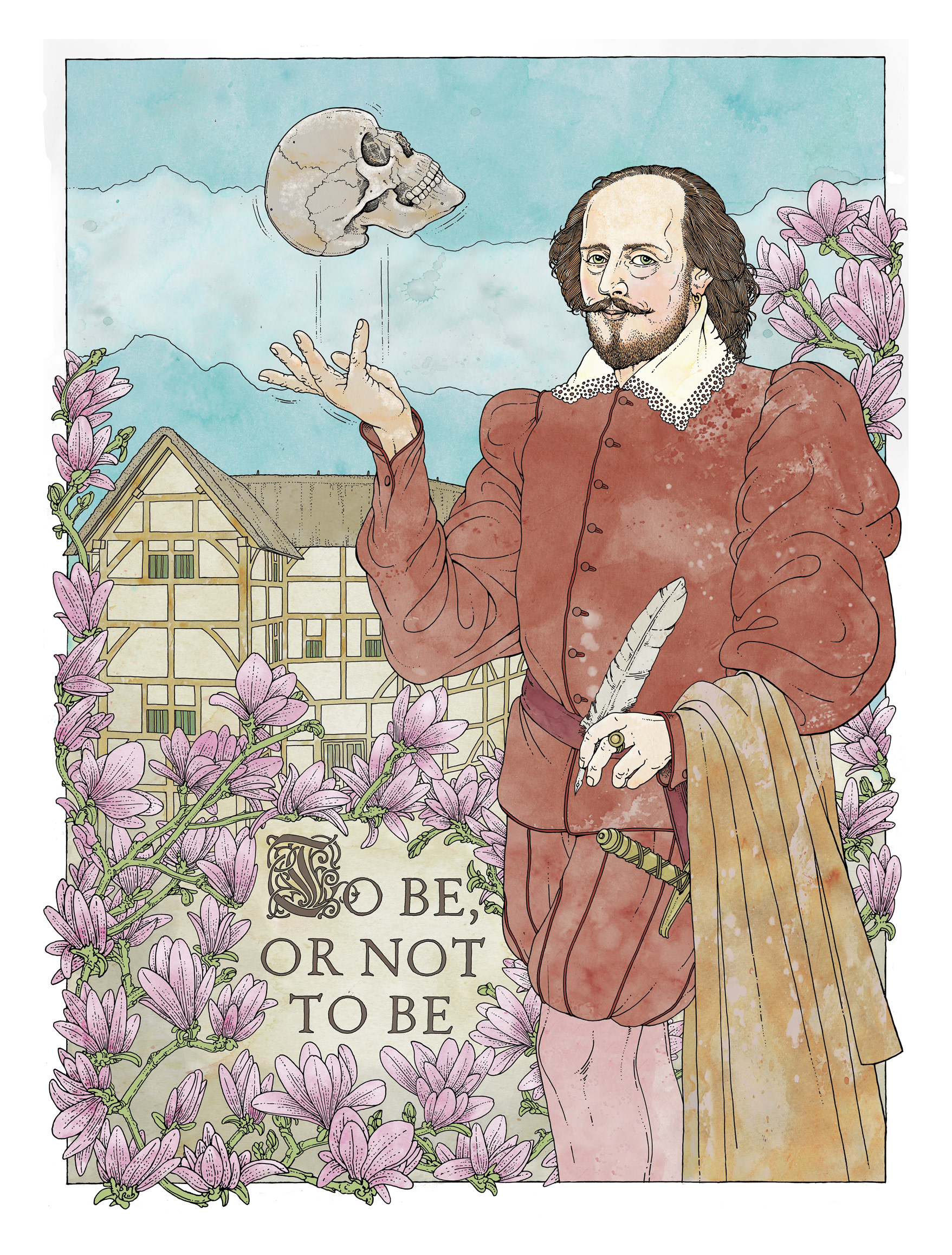 "450 years William Shakespeare." Portrait of the writer for the feuilleton and title of the Süddeutsche Zeitung.
